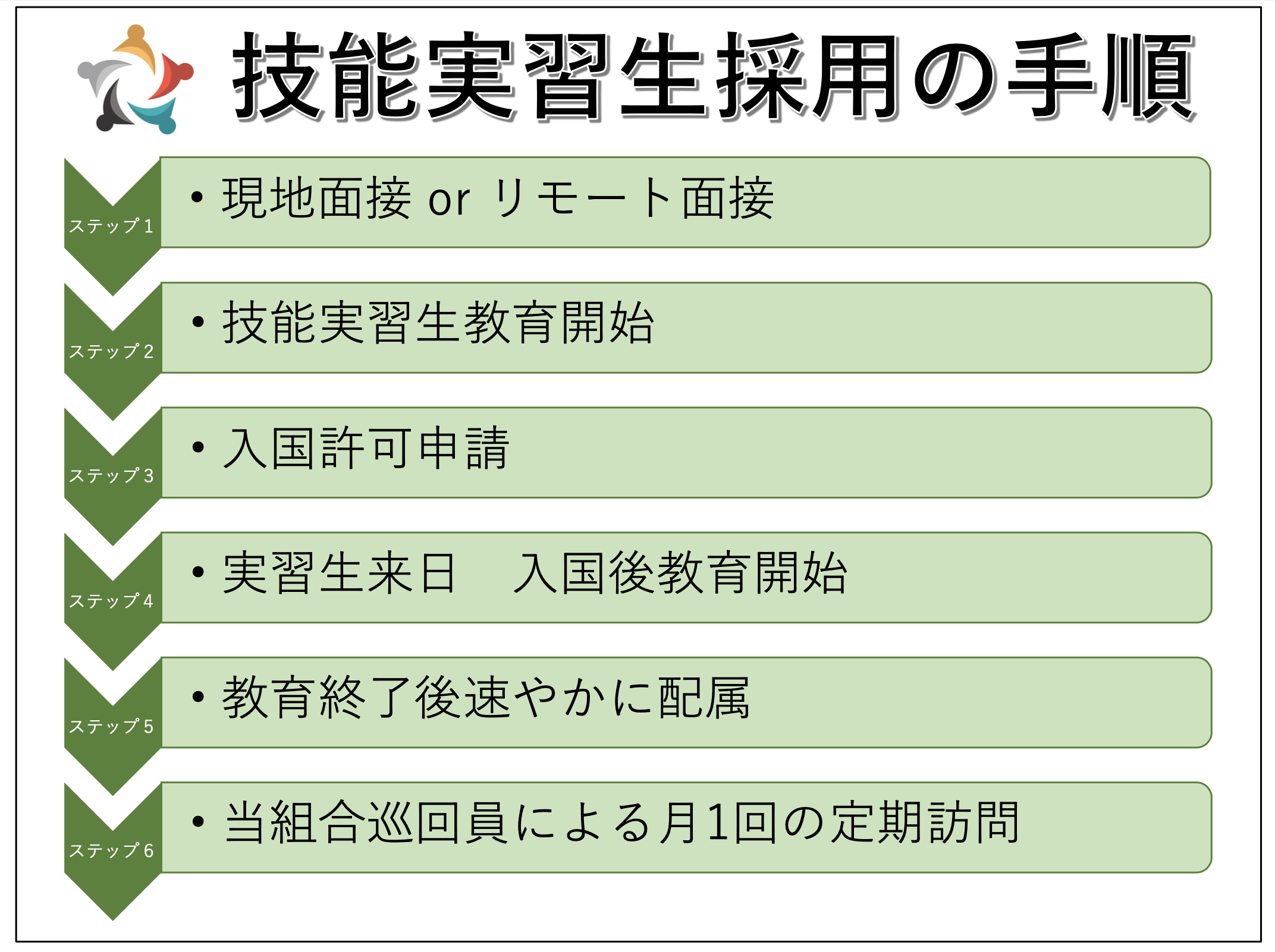 ・入国時から企業様への配属まで責任を持って当組合員が手続や同行を致します。